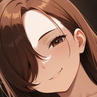 AI Prompt: A cute adult anime brunette with long hair and a naughty smile, one eye covered by her hair, has big breasts and wears a tiny brown bikini. Her brown eyes look directly at the camera, on a seamless background.